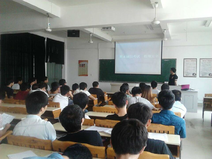 2014年06月19日下午,机械系12级同学们在33#302召开期末考试动员及假期安全大会,会议由12级辅导员助理陈炜龙主持。本次会议旨在动员同学以饱满的精神,良好的心态复习诚信迎考。最后,强调了考试结束后假期的人身、财产和交通等安全问题,以此来提高同学们遵纪守法观念和自我防范能力,使同学们做到居危思安,防患于未然,度过一个平安、愉快的暑假。