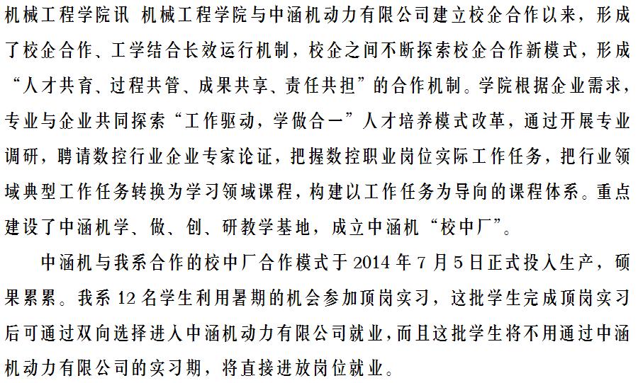“校企合作、工学结合”人才培养模式结硕果