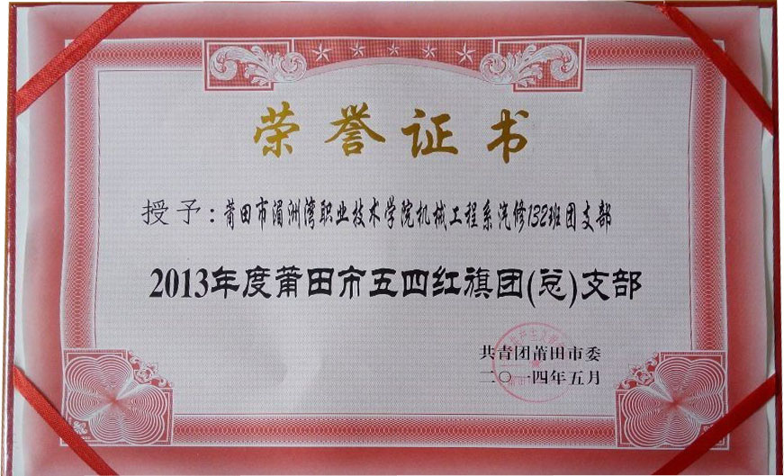 汽修132班团支部获2013年度莆田市五四红旗团(总)支部