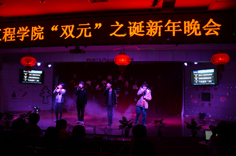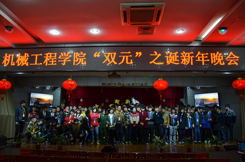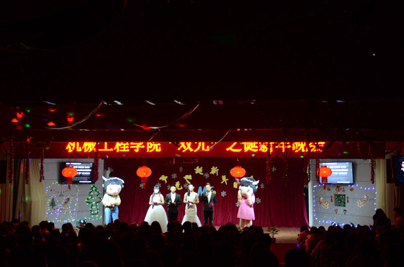当前位置: 系部首页>最新消息 2014年12月26日晚上七点,我系在17#201举办“双元”之诞新年晚会。晚会还没开始现场已人来人往气氛十分活跃。现场的屏幕上不断滚动着大家微博发来的祝福。到场的嘉宾有福建元通达设备有限公司郑慰伟总经理,学工处副处长林俊老师,系团委书记翁歆老师,社区辅导员陈录清老师、范健健老师,蔡海雄老师和李佩君老师。