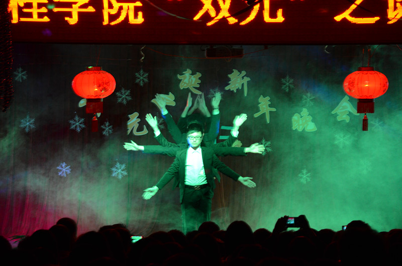 随着青春活跃的开场舞《向快乐出发》,晚会正式拉开了序幕。爱心社带来《串烧舞》舞蹈风趣搞笑,将晚会推向了第一次高潮,也赢得了观众们阵阵的掌声,欢呼声一浪更比一浪高。相声《新生报道》讲述了新生初来乍到遇到逗比学长的搞笑故事。武术社带来的节目《武》更是体现了中华民族传统的武术精神。整场晚会精彩不断,由信息工程学院带来的《舞狮》充满了中国传统民间习俗也加入现代元素,并夹带着许多高难度动作,将比赛推向了第二次高潮。汽服141带来的《练儿子》以及测控131的《白富美与女屌丝的偶遇》两部小品内容充满了爆笑点,引起了台下观众们的爆笑声不断,掌声不断。也将晚会推向了第三次高潮。本次晚会的大奖放在了最后的抽奖环节,大奖也终于揭开了神秘面纱是一部手机由我系汽服141雅萍同学获得。