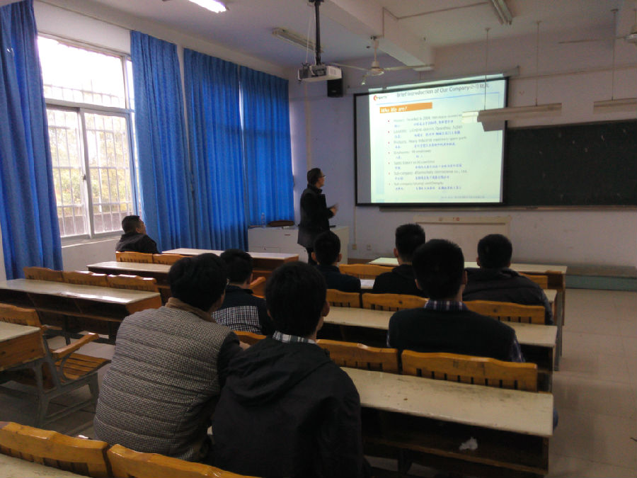 交流会在33#303举行,肖总介绍了公司情况、企业文化及发展前景等,并与机电131班的学生进行了交流。