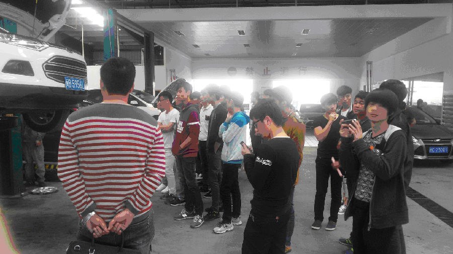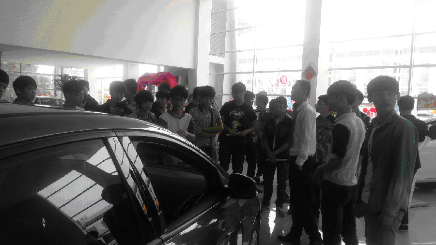 在参观过程中,4s店培训师向同学们介绍了公司情况及整车销售(Sale)、零配件(Sparepart)、售后服务(Service)、信息反馈(Survey)等工作岗位,并对不同岗位进行详细的剖析,对同学以后的就业提供了一定的参考,也让同学们更加明确以后学习的目标。随后,同学们参观了汽车展厅,期间由培训师详细讲解销售整车的过程。最后同学们参观了售后服务的工作区域,主要包括保养、维修、钣金、喷漆、清洗、贴膜等工位,让同学们深入了解有关汽车售后服务实际的工作情况。