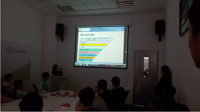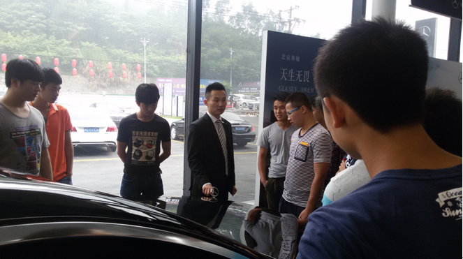 在参观展厅的过程中,售后服务林经理向同学们介绍了奔驰公司的各种车型主要包括C级、E级和S级车型以及最新技术。随后,同学们参观了奔驰车售后维修、钣金、喷漆和配件车间,期间由培训师详细讲解工作流程及岗位情况。最后由人事专员向同学们介绍莆田之星奔驰4s店的基本情况、公司待遇和工作环境等,为同学们以后就业选择提供了一定的参考。