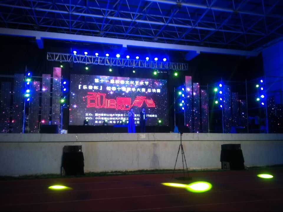 当前位置: 系部首页>最新消息2015年6月10日晚上七点,第十一届校园文化艺术节“敢唱最青春”校园十佳歌手总决赛在四百米操场拉开序幕。本次比赛由博仲斌老师、陈炜老师、郑佩佩老师、翁歆老师、连一萍老师、王琦老师等人担任此次评委。