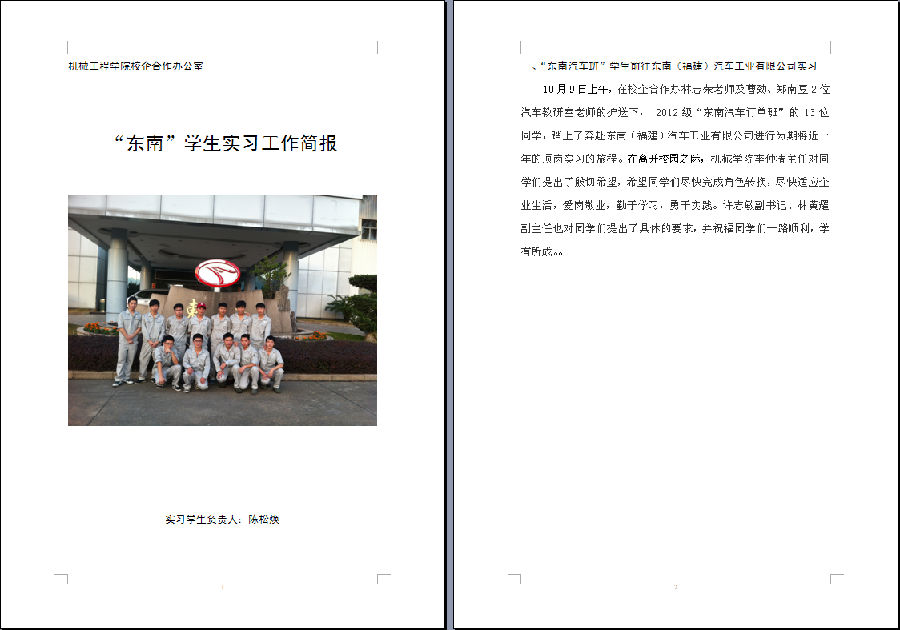“东南汽车班”学生实习工作简报(2015届)