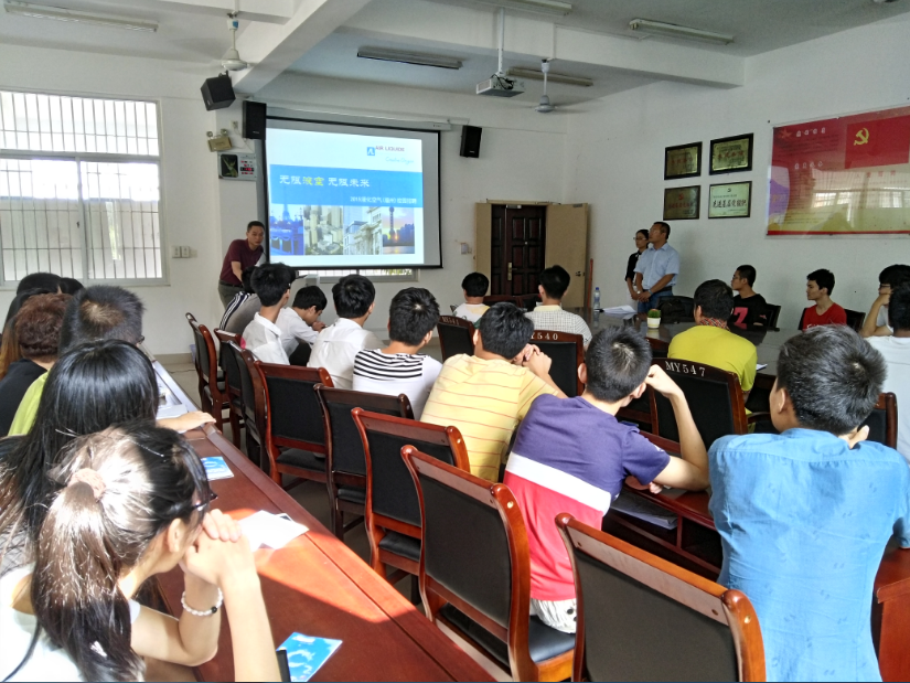 当前位置: 系部首页>最新消息9月24日,液化空气集团一行来我院针对2016届毕业生进行宣讲。液化空气集团是全球工业与医疗保健气体、技术和服务领域的领导者,业务遍及80个国家,员工逾50,000人,为超过200万名客户与患者提供服务。2013年,液化空气集团的销售额达152亿欧元,其中保护生命与环境的解决方案约占销售的40%。液化空气集团在巴黎泛欧证券交易市场上市(A 类),同时是法国指股CAC 40指数及道琼斯欧元区斯托克50指数的成员企业。