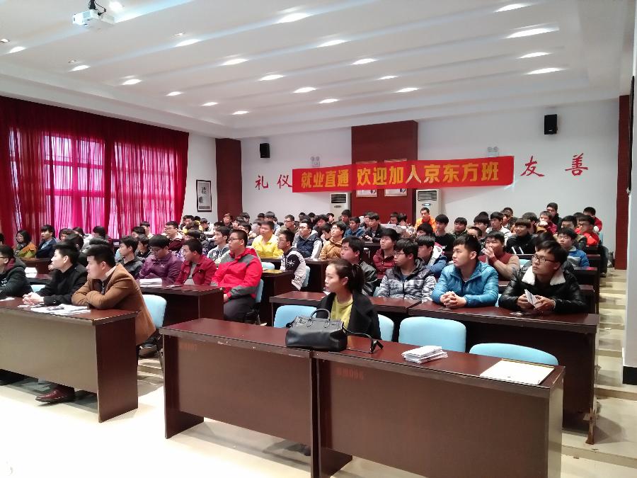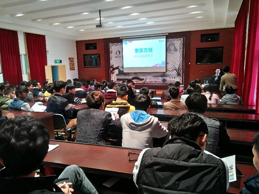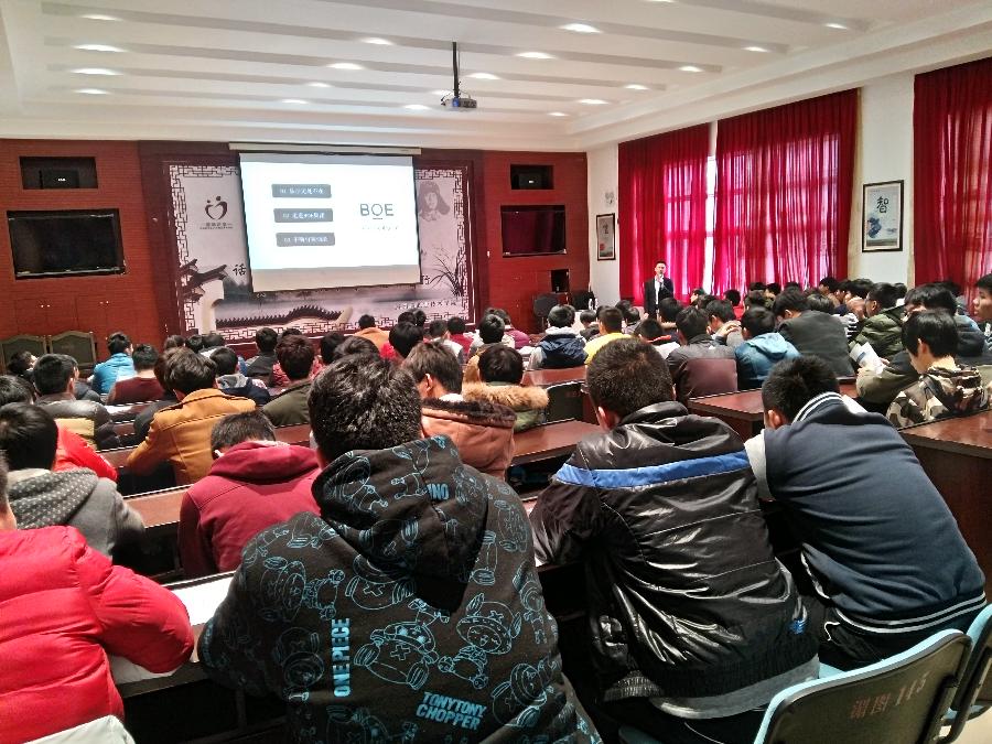 宣讲会在图书馆一层会议室举行,来自机械工程学院、自动化工程学院、海洋与环境学院的100多位同学参加了宣导会。会后共有52位同学参加了京东方科技集团组织的上机笔试、体能测试、面试,最终有40位同学加入到“京东方班”。