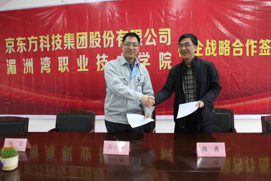 当前位置: 系部首页>最新消息3月16日下午,湄洲湾职业技术学院与京东方科技集团股份有限公司正式签署合作协议,校企共同开设“京东方班”,双方在合作育人的基础上,共同制定“京东方班”的专业教学计划和课程教学大纲,逐步开展专业人才培养标准构建、课程体系建设、校企教材开发等方面的合作。目前“京东方班”已正式开班,京东方科技集团将派出企业专家进行授课,把企业文化、职业素养、产业知识、精益生产课程等融入该班的教学过程中;学院将派出专门的班主任负责京东方班的日常管理工作,确保京东方班日常的管理及授课。同时京东方公司还专门设立了专项奖学金。“京东方”学员在湄洲湾职业技术学院就读2年后可直接到京东方科技集团实习,并在实习结束后享有优先就业的权利。