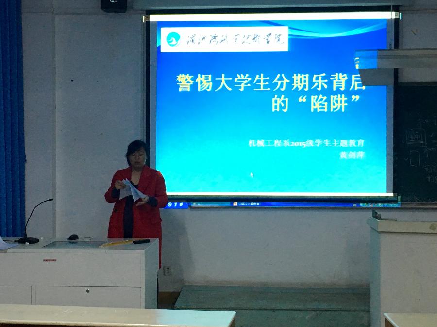 当前位置: 系部首页>最新消息 昨晚七点黄剑萍老师在33号楼203为大一的小伙伴们开了一个简短的会议,会议上主要给我讲了"分期乐"背后的陷阱和"春夏季传染病的预防",给大家科普了一些知识