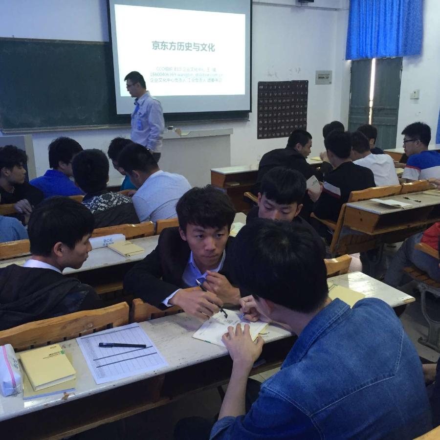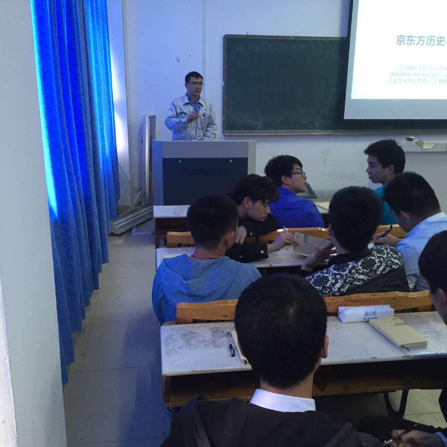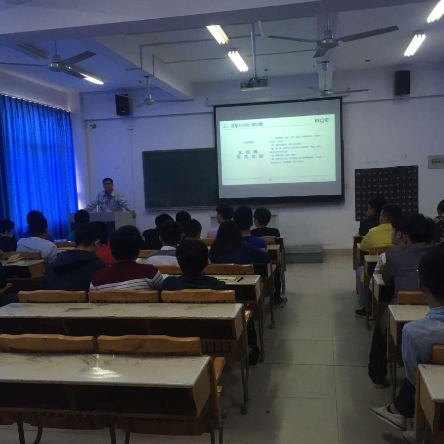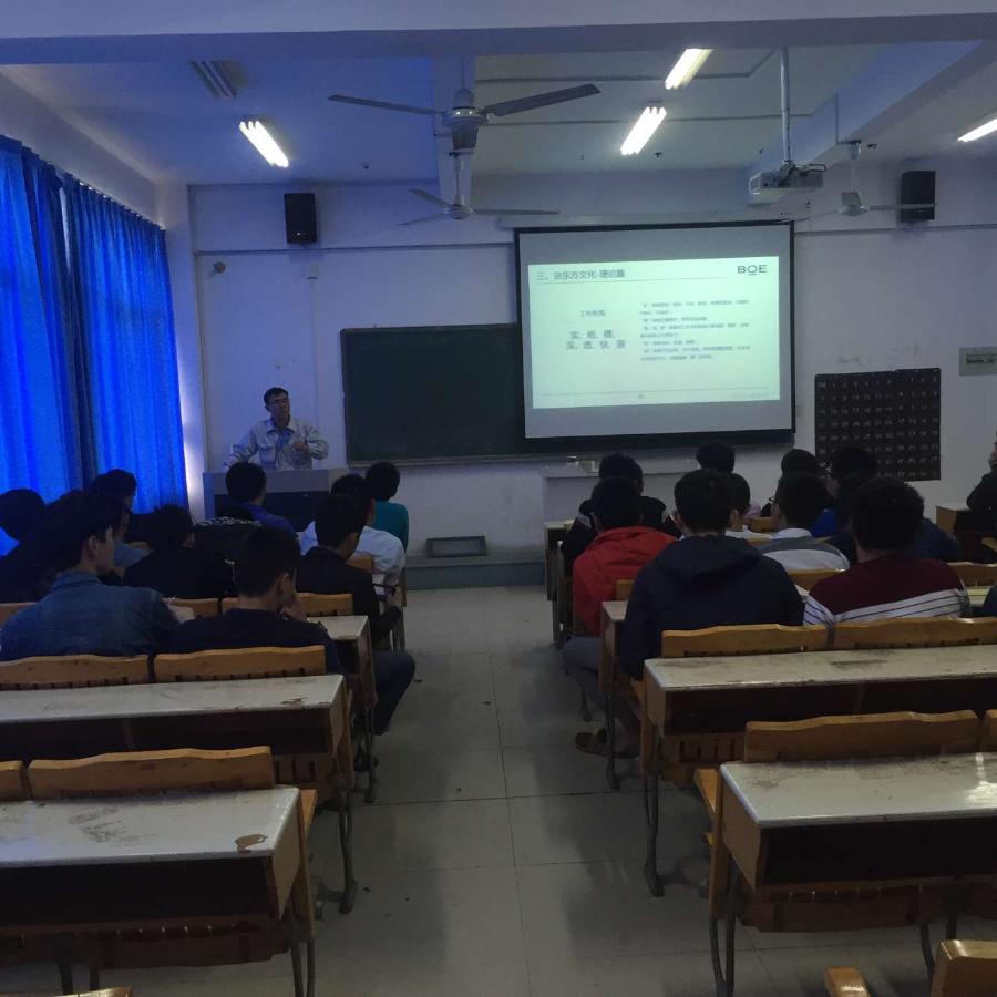 当前位置: 系部首页>最新消息自2014级“京东方班”开班以来,学院与京东方科技集团十分重视首期“京东方班”,校企共同确定了“京东方班”的课程安排。本学期预计安排9次活动,其中企业专家讲座4次,校内素质拓展活动2次,校企共同组织主题活动2次,并正在协商企业参观体验1次。同时学院及京东方将选派经过专业培训及认证的优秀讲师为学员授课,确保授课质量。