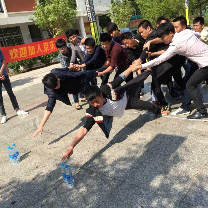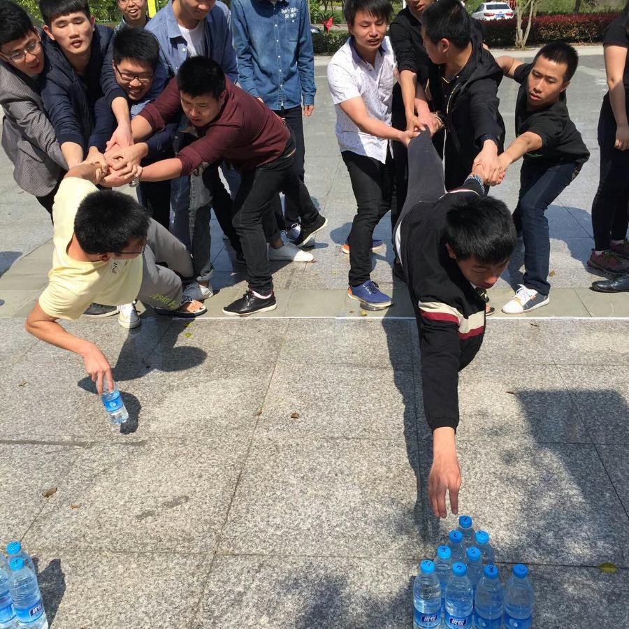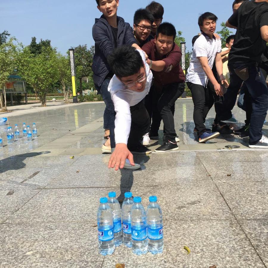 当前位置: 系部首页>最新消息在机械楼广场,活动开始林伟岭老师用扑克牌将学生分为两个团队,每个团队16人。第一个项目是雷区取水,每队有16瓶水,每队队员必须依靠队友来取到距离2米的矿泉水,每人取一次;短暂的松鼠找房子小游戏,让同学们把筋骨打开;接下来精彩的同心鼓项目,每队队员手拉一条绳子利用团队的力量运球,运球数多的赢,最后红队以86次的分数险胜;活动结束后,各队都获得了扑克牌奖励,这些扑克牌将作为6个原始团队的团队积分进行累积,并将作为“京东方班”奖学金评选的重要依据之一。