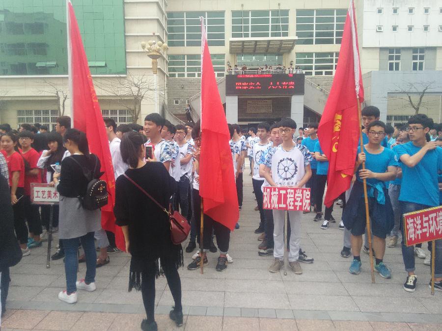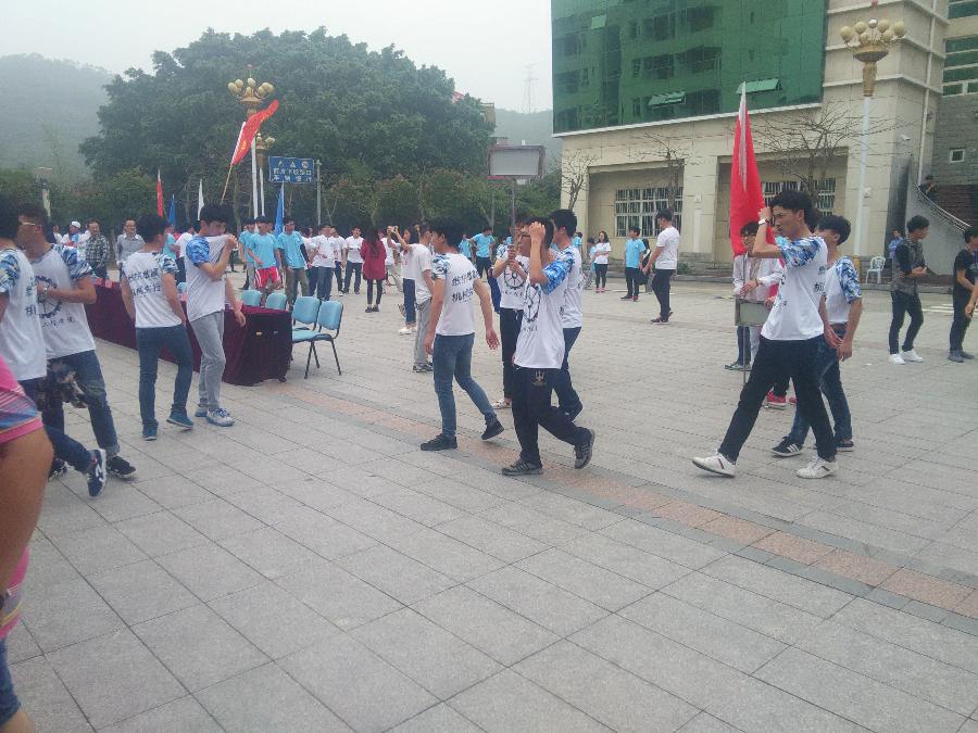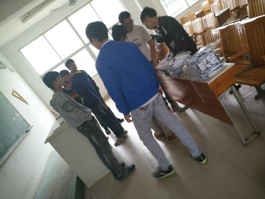 在去集合之前,我们的小伙伴们还去领取了属于我们系的标志,我们的系服