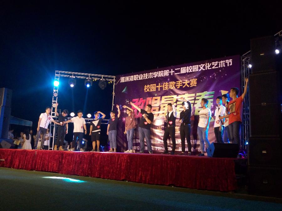 当前位置: 系部首页>最新消息 2016年5月9日晚上七点,第十二届校园文化艺术节“敢唱最青春”校园十佳歌手半决赛在400米操场拉开序幕。今晚到场的来宾有湄洲湾职业技术学校团委书记林进老师,湄洲湾职业技术学院团委黄心闲老师,湄洲湾职业技术学院湄园剧组蔡海雄老师,机械工程学院分团委书记翁歆老师,机械工程学院林伟岭老师。海选结束后经过层层选拔,最后选出了实力极强的30名选手进入今晚的30进16半决赛。