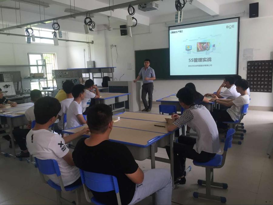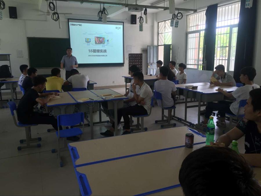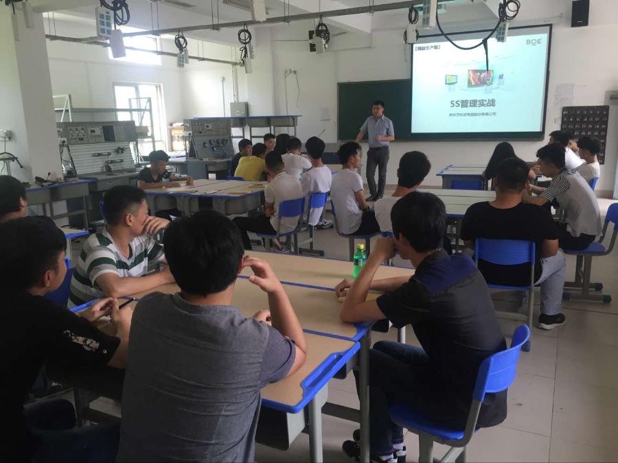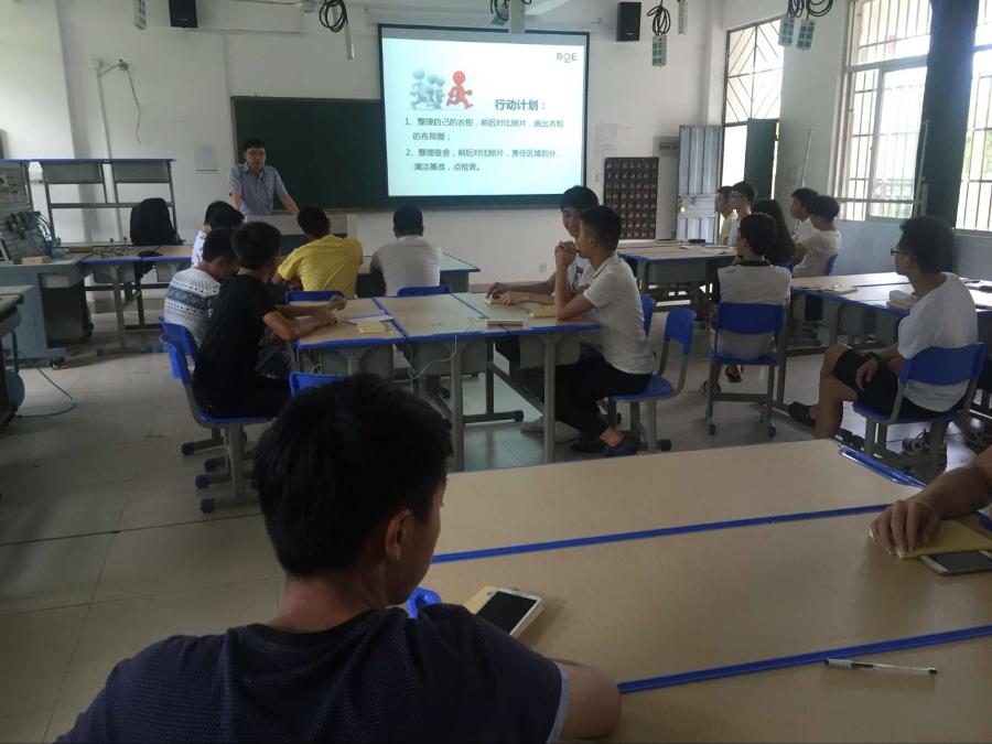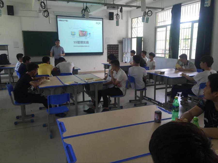 通过学习“5S管理”让学员们在对自己的管理,还有宿舍,家里的整理都有了更加明确实用的方法,也让学员们了解了京东方是怎么样的一个工作环境,帮助学员们更快的融入企业,适应企业的环境。