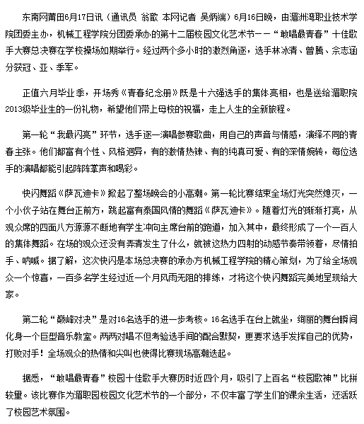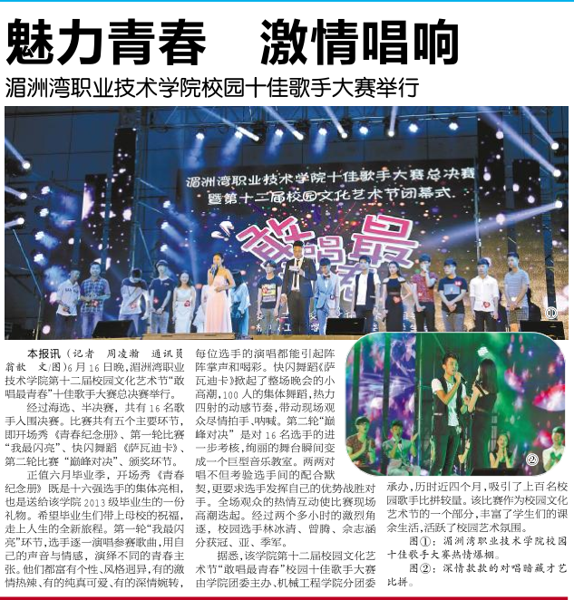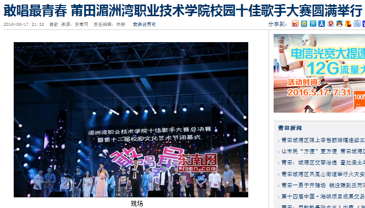湄洲日报、莆田东南网等媒体报道---湄职院“敢唱最青春”校园十佳歌手大赛盛事