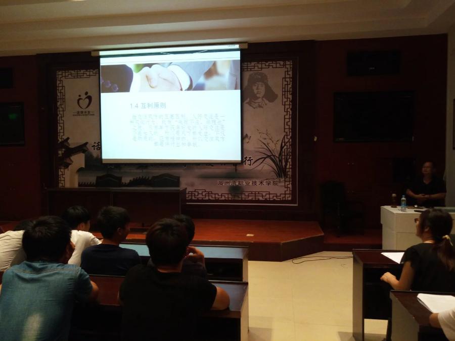本次道德讲堂特邀学院心理健康教育专职老师、国家二级心理咨询师徐英杰老师做“沟通无限,魅力无限”的专题讲座。善于沟通,就是善于处理人际关系。徐老师先从发生在大学校园的几起案例引出今天的主题沟通的重要性。在讲座中徐老师介绍了马加爵事件、中南大学杀人案、复旦大学投毒死亡案、四川师范大学杀人事件、西安女大学生被“闺蜜”捅死这几起发生在大学校园的真实案例,并分析了事件发生的根本原因:缺乏沟通。在讲座的下半部分,徐老师从人际交往的原则、注意事项及人际交往的技巧三个方面与同学们分享了如何提高自己的沟通能力,让同学们陷入深深地反思。讲座的最后,徐老师提了一个问题供大家思考:如果你同宿舍的一个舍友一周不洗脚,你会怎么处理?