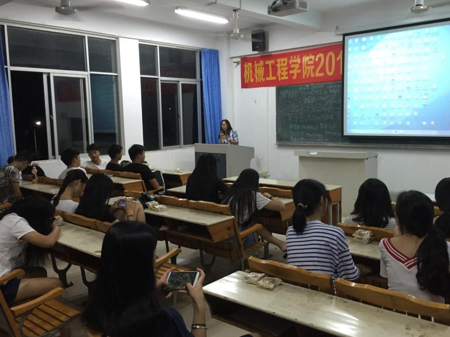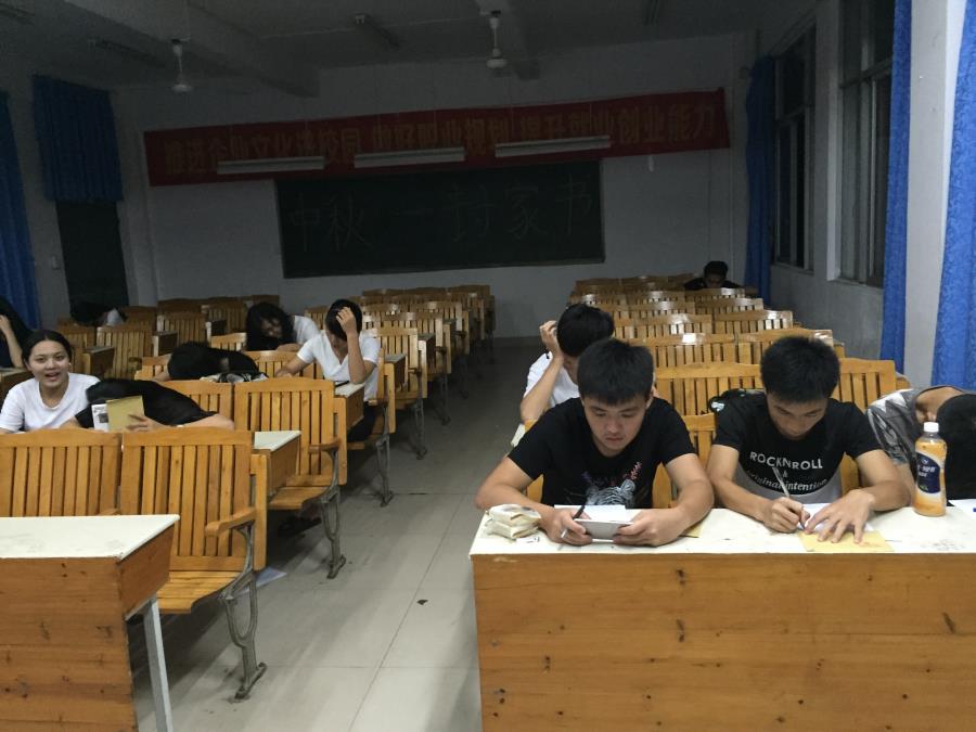 当前位置: 系部首页>最新消息随着迎新的结束,军训的开始,中秋即将到来了,9月12日晚,机械工程学院团委的代班们代表全系老生走进各个班级,带去了兄长们对新生的慰问和祝福,也带去了迎中秋“一封家书”感恩活动的倡议。