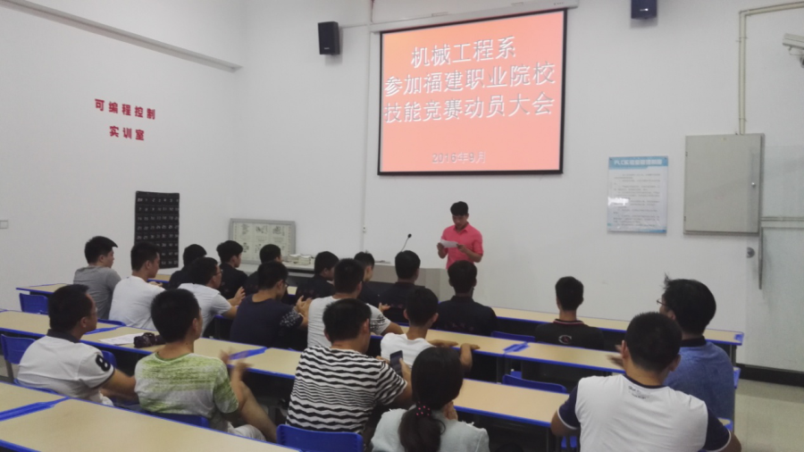 9月18日下午,机械工程学院在实训中心召开2017年省高职院校技能大赛赛前动员会。会议由实训中心主任陈威主持,机械工程学院主任李仲清出席会议并讲话。各参赛项目指导老师、参赛选手参加了大会。