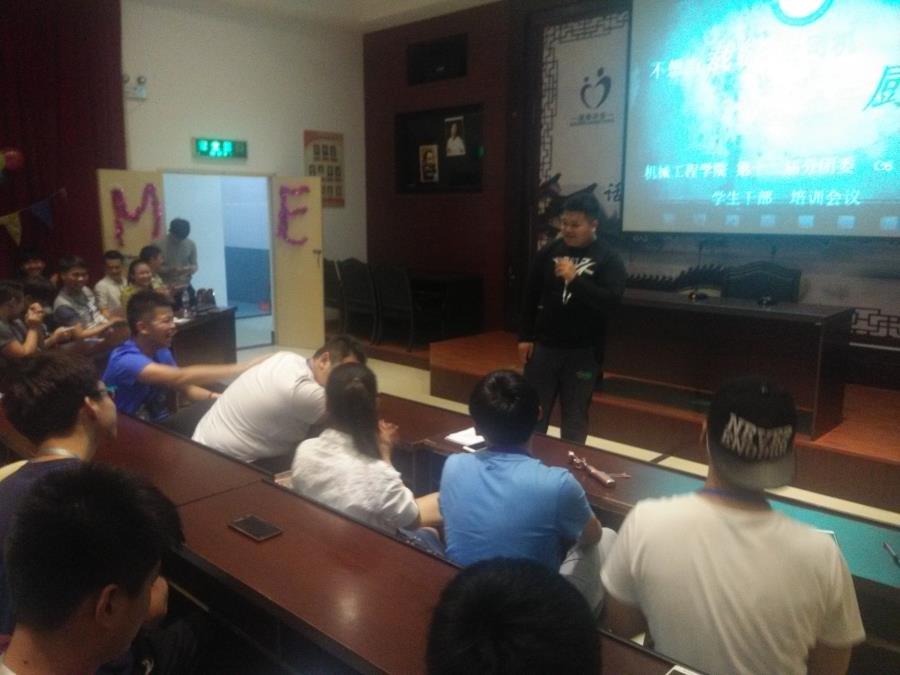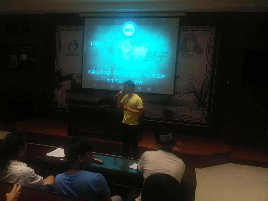 会议主题是:“不想做裁缝的司机不是好厨子”由机械系分团委林财鑫副主席介绍了我系第十一届学生会举办的各个精彩活动的流程,给大家熟悉下学生会的主要流程,让大家彼此互相认识一下。