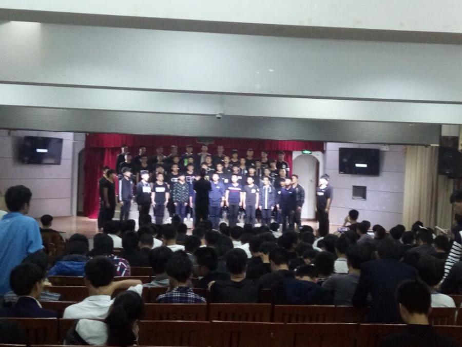 当前位置: 系部首页>最新消息 为了迎接院部的一二九大合唱,我系举行了“传红歌,颂祖国”大合唱比赛,来选拔优秀的人才参加一二九大合唱。本次到场的评委分别是:院团委黄心闲老师,基础部邹祎程老师,自动化杨娴老师,林伟岭老师,翁歆老师。嘉宾许志敏书记。这次比赛于2016年11月3日晚在17号201礼堂举行。