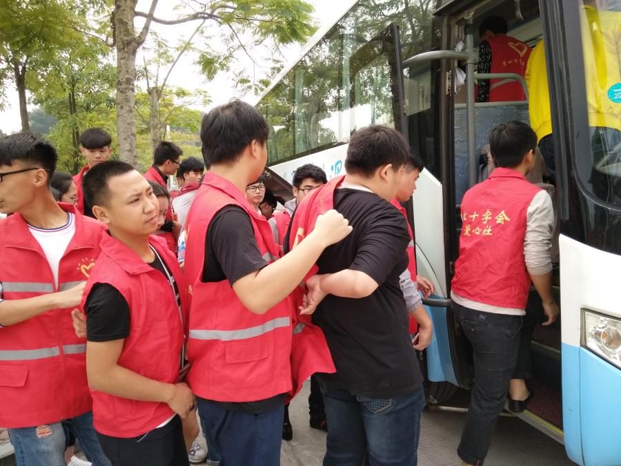 机械系的小伙伴们为旅客提行李