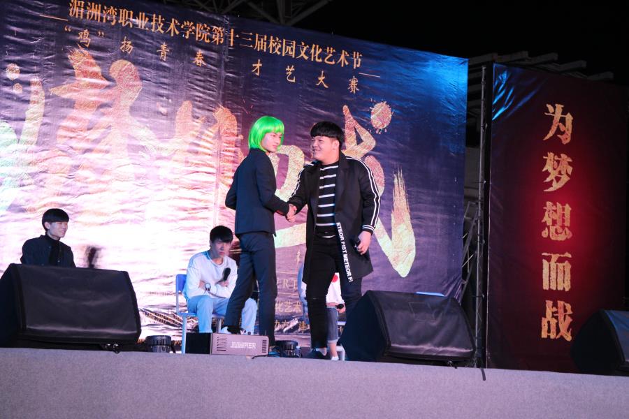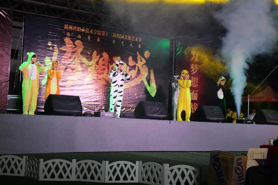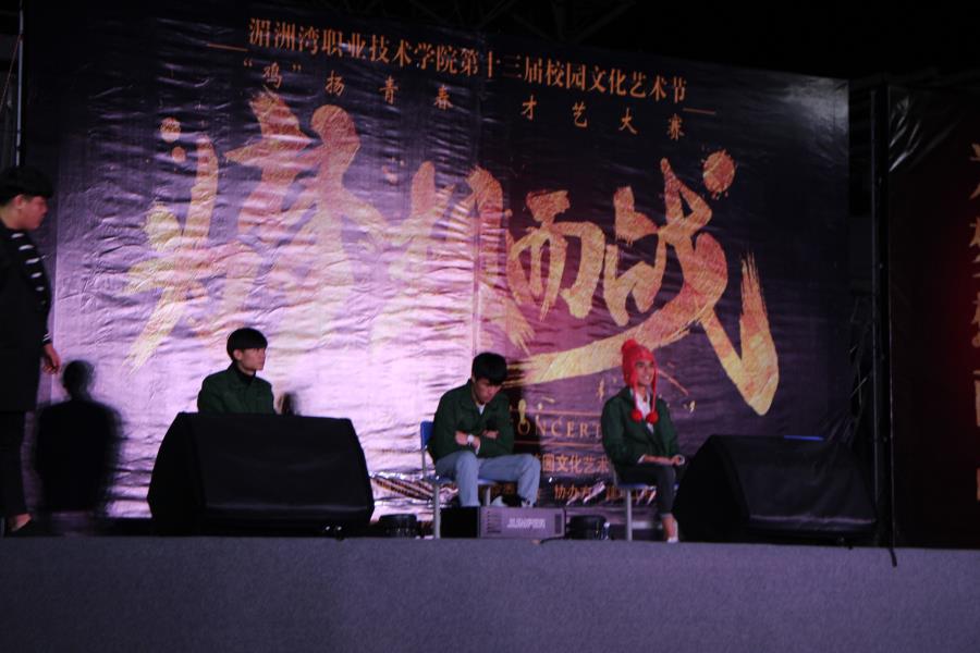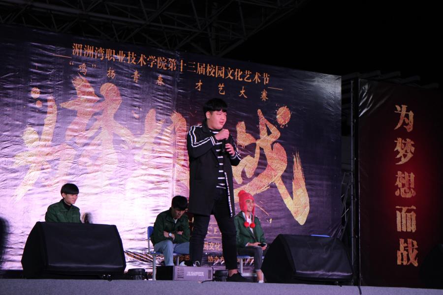当前位置: 系部首页>最新消息 3月28号晚上7点在400米操场举行了湄洲湾职业技术学院第十三届校园文化艺术节此次口号为‘鸡’扬青春才艺大赛。