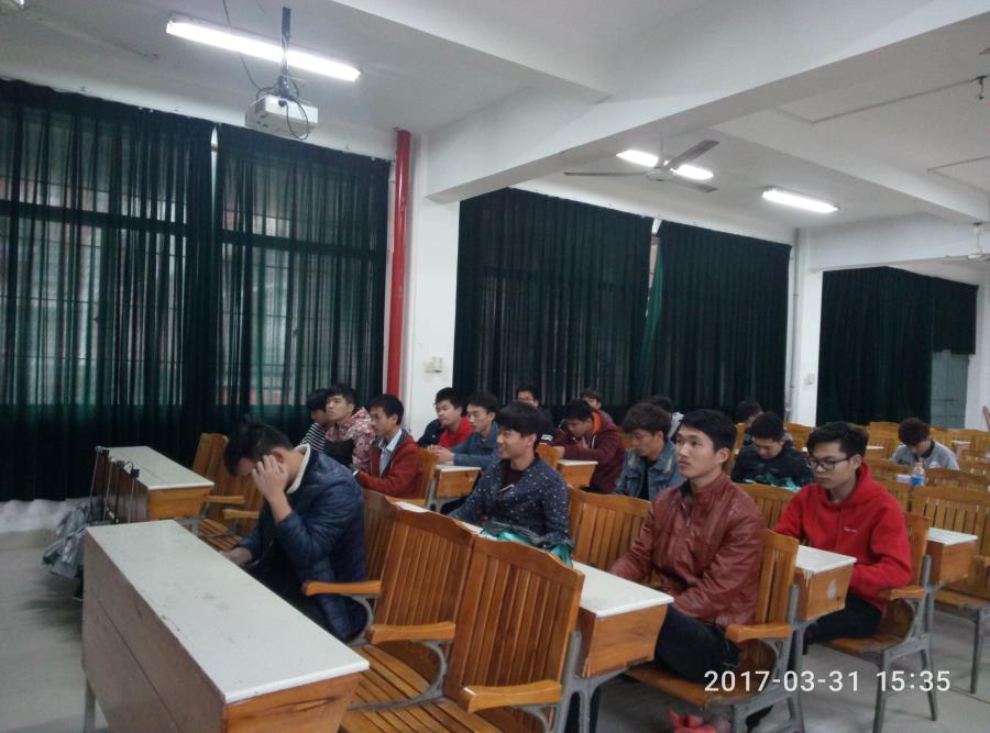 又是一年清明佳节来临之际,机械工程系辅导员于2017年3月30日,给机械学生上了一堂安全为主题的课。主要内容有:1、清明假期,各班级做好留校登记。2、请假回家乘车安全,上山扫墓安全注意事项。3、校园暴力事件,管制刀具,创建平安校园,和谐宿舍。4、校内学生清明出去游玩踏青,注意旅行安全。5、回校归途安全与不能及时返校原因登记。