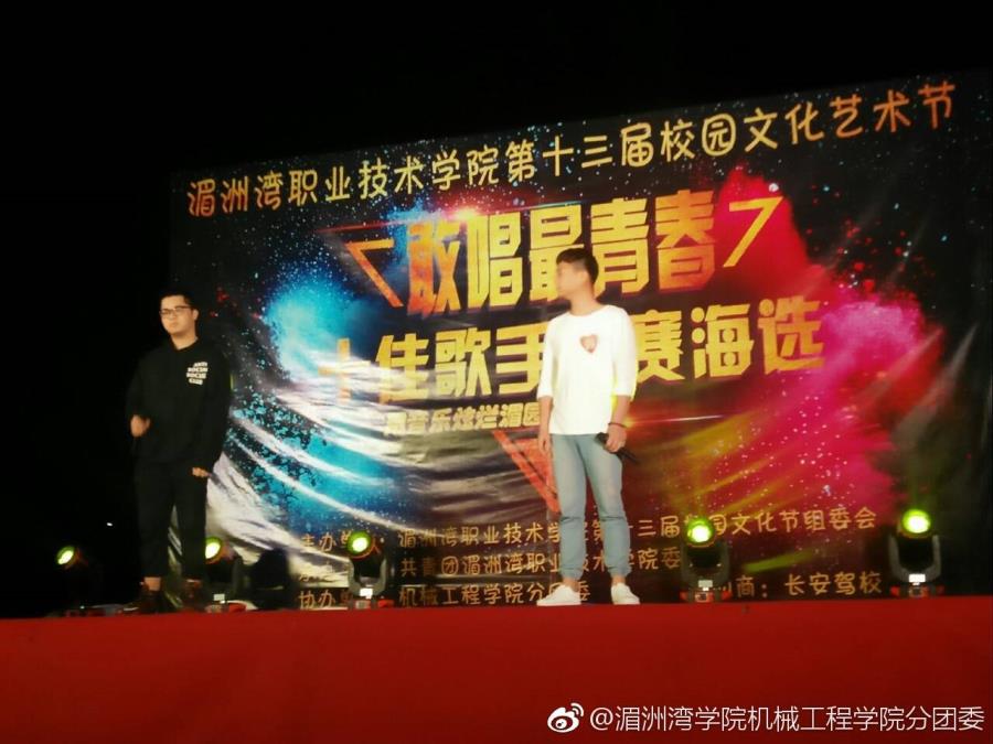 当前位置: 系部首页>最新消息4月24和25号晚在400米操场上我们迎来了敢唱最青春-第十三届“校园十佳歌手比赛”海选。选手们早已到场准备好随时上场。比赛现场挤满了来观赛的同学以及前来为选手呐喊助威的亲友团。不一会我们的比赛开始了,比赛十分激烈,现场观众也十分热情。