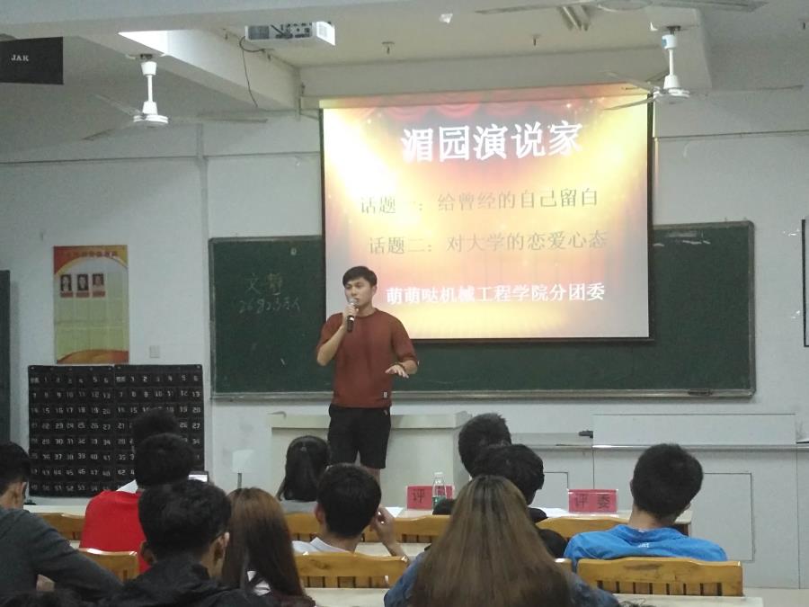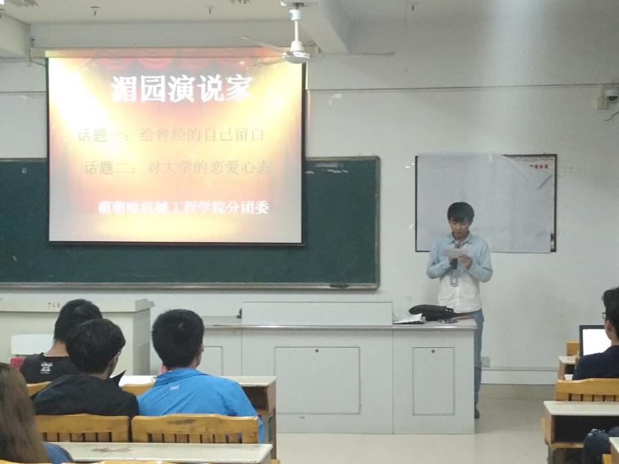当前位置: 系部首页>最新消息4月26日,由机械系分团委学习部组织,机械工程学院同学们参加的“湄园演说家”比赛在32号楼302举行。本次比赛以“给曾经的自己留白”和“对大学的恋爱心态”两个话题二选一进行拼搏,院团委黄心娴老师,机械系分团委书记翁歆老师,机械系16级辅导员林伟岭老师担任此次活动评委。