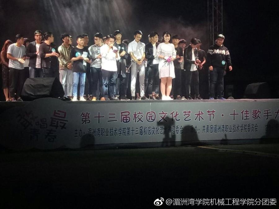 现场围满了观众他们热情的为选手加油助威。开场秀中选手们一人一句情歌王真的是十分好听,歌声交织着神秘、优雅、飘渺、性感的音符。情歌王之后选手们一一带来精心准备的歌曲,选手和组合依次登台献唱,他们的各异风格在灯光璀璨的舞台上得到了淋漓尽致的展现,为现场师生们带来了或悠扬婉转或欢快激昂或悲伤绵长的精彩演唱。还没听够比赛就到尾声了,感谢选手们给我们带来的歌曲。让我们决赛见吧,同时小编希望进入决赛的同学可以有更好的发挥!最后我们机械的小伙伴们一起拍了合照打扫现场卫生整理完我们解散了。