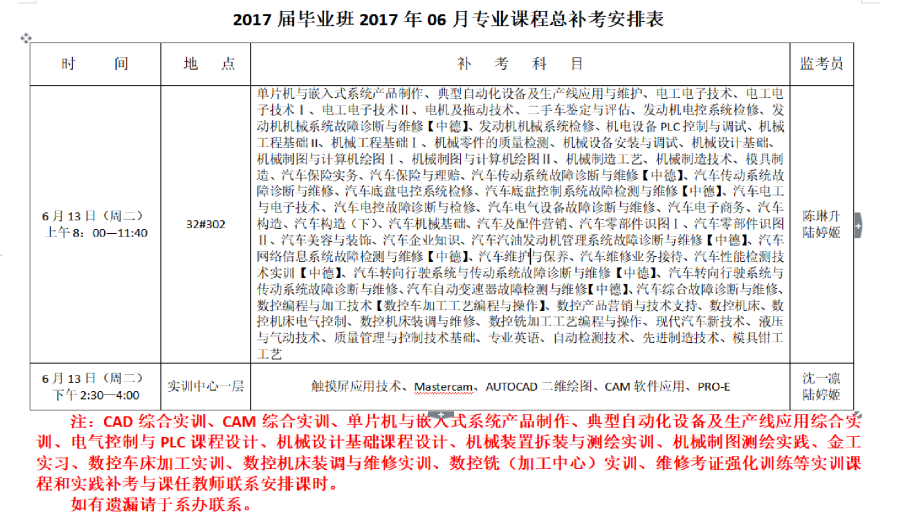 2017届毕业班总补考安排表【专业课程】