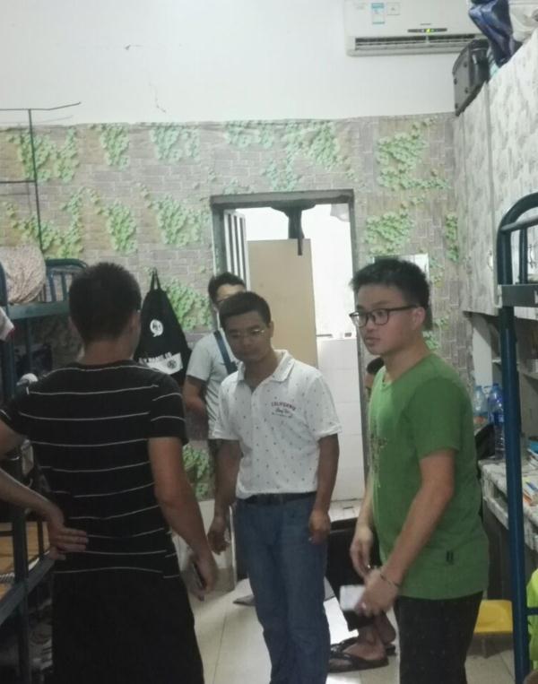 当前位置: 系部首页>最新消息 为了进一步加强学生宿舍安全管理工作,督促学生保持良好的宿舍卫生环境,营造良好的学习氛围,2017年6月8日,机械工程系党总支许志敏副书记,思政辅导员林伟岭老师、黄剑萍老师及社区辅导员陈录清老师,同机械工程系自律会学生干部对我院学生宿舍的卫生和安全情况进行了排查。