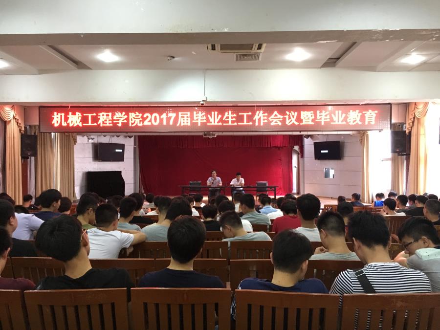 当前位置: 系部首页>最新消息毕业生离校教育是大学生培养教育环节的最后一课,也是学校人才培养的一项重要内容。6月12日下午,机械工程学院在17#201召开毕业生教育和毕业工作工作会议,引导毕业生感恩母校,安全、文明离校。李仲清副主任、许志敏副书记、辅导员林伟岭、翁歆老师及2017届全体毕业生参加了会议,会议由党总支许志敏主持。会上,李主任就毕业生离校过程中的各项具体事务和离校相关手续的办理作了具体安排。许志敏书记就毕业生关心的一系列问题进行了详细讲解,涉及到档案、户籍、党团关系接转等毕业生密切相关的问题。随后,他对毕业生提出几点要求:1、积极倡导文明离校,从我做起;2、知感恩讲诚信;3、保持正常心态对待毕业,一如既往的严格遵守校纪校规,为学弟学妹们树立榜样;4、重视人身安全,严格请假手续,保持联系畅通;5、积极投身国防建设、报效祖国。最后,系领导对毕业生提出了殷切希望,希冀各位毕业生在未来的学习与工作中不忘初心、积极进取,以积极的心态书写人生美好篇章。