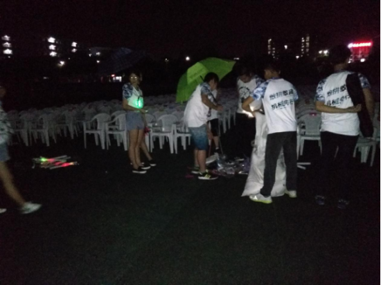 比赛结束了,观众散去,操场上只剩下机械工程学院学生会成员,感谢他们的努力,从4月初的十佳海选一直到今晚总决赛,台前幕后辛苦工作,却不曾抱怨过。我们更要感谢的是我们的翁歆老师,她从海选和我们一起努力到总决赛,不管是重要决定还是小细节,她一路相随。正是有了你们这些默默付出的可爱的机械人,才有了十佳歌手的闪耀湄园和完美落幕。