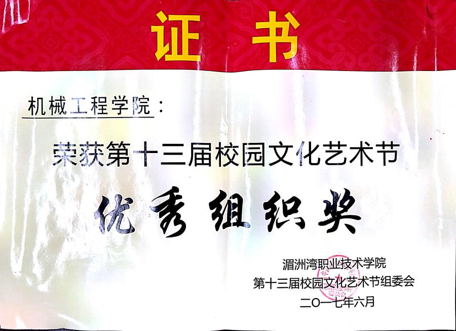 我院荣获第十三届校园文化艺术节“优秀组织奖”