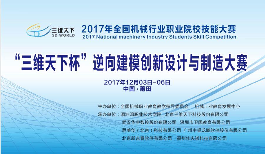 2017年全国机械行业职业院校技能大赛高职组“‘三维天下杯’逆向建模创新设计与制造大赛”赛项将于2017年12月3日-6日在我校举行,大赛由全国机械职业教育教学指导委员会、机械工业教育发展中心主办,我校承办、机械工程学院协办,这是我校历史上首次举办全国性技能大赛。