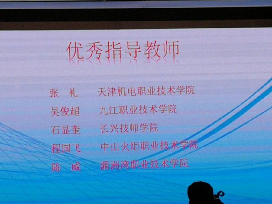 行指委监督员马骁博士宣布获奖名单,天津机电职业技术学院等五所院校获得一等奖,许昌职业技术学院等十三所院校获得二等奖,福建船政交通职业学院等十八所院校获得三等奖,天津机电职业技术学院张礼等五位教师获得优秀指导教师称号。