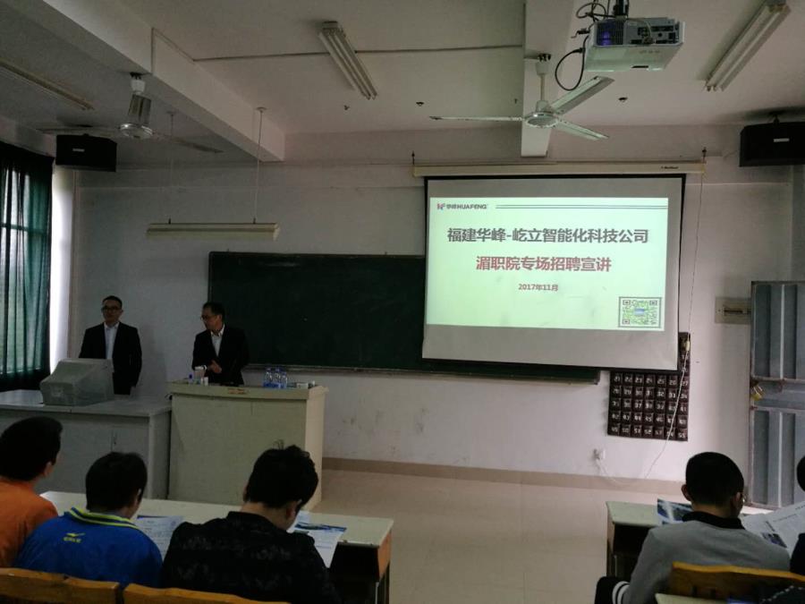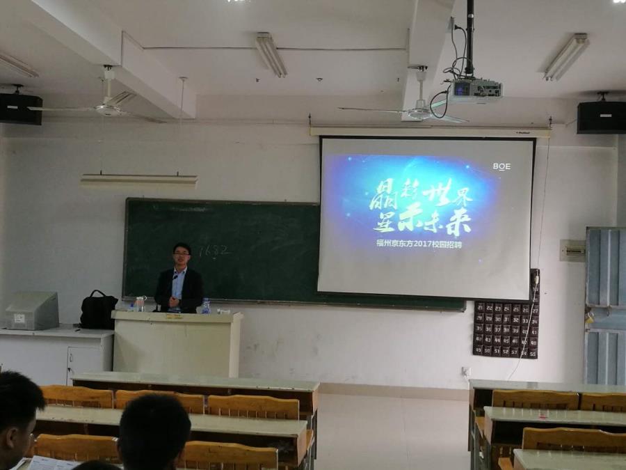 2017年11月21下午,机械工程系在33#303多媒体教室举行2018届学生顶岗实习第三场专场招聘会,本次共有福建华佳彩有限公司、福建钜能电力有限公司、莆田市华峰工贸有限公司、福州京东方光电科技有限公司等4家重点企业参与。在企业与学生的积极参与下,招聘会取得较好的成果。