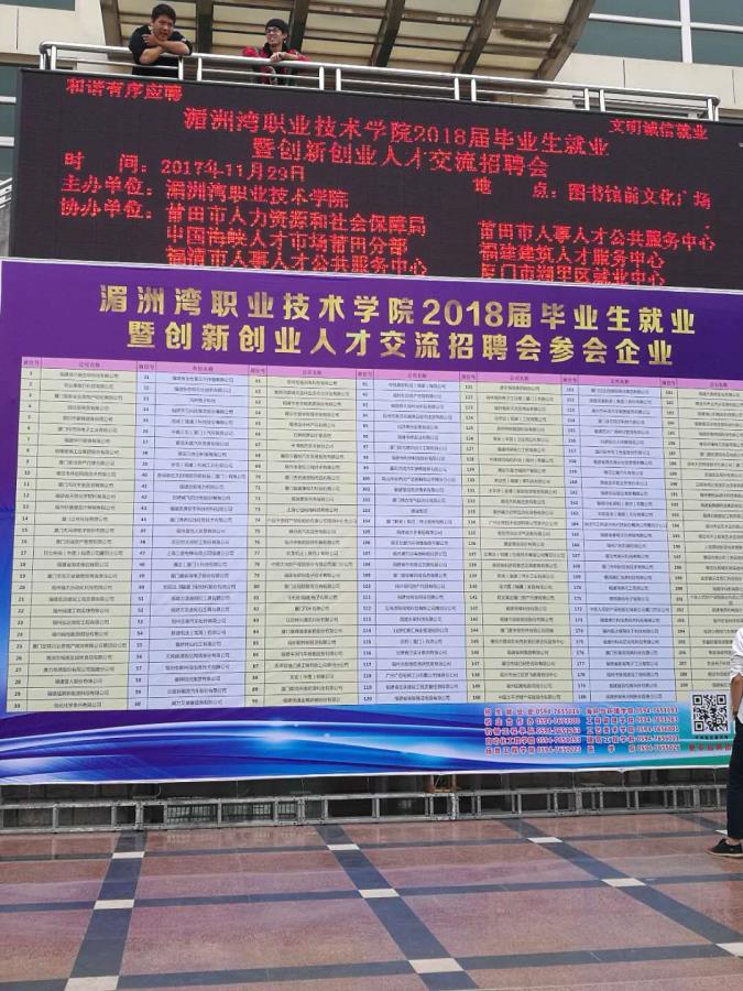 2017年11月29日,湄洲湾职业技术学院2018届毕业生就业暨创新创业人才交流招聘会在校内图书馆前文化广场举办,为了做好服务工作,加强与企业之间的联系,同时也为了方便学生与企业之间的对话交流,机械工程系领导、系办公室主任及辅导员到亲临现场,就企业及学生关心问题现场给予解答,受到用人单位及学生一致好评。