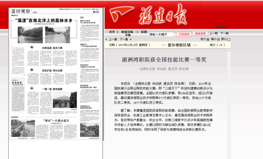 福建日报:湄洲湾职院获全国技能比赛一等奖