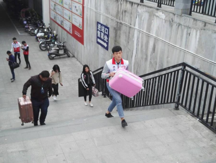乐于助人 帮旅客提行李