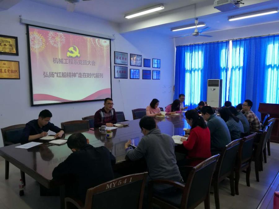 时,机械工程系在系部党员活动室举行“弘扬“红船精神”走在时代前列”主题党日活动。会上,参会党员同志认真学习相关理论知识,并结合工作实际各自发言。