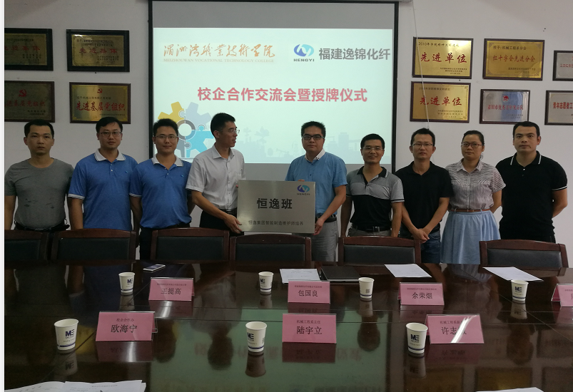 6月19日,我系在会议室举行 恒逸集团“智能制造维护师”开班仪式。恒逸集团福建逸锦化纤有限公司总经理包国良、综合部经理余荣烟、综合主管王提高、设备部主任周新亮、学院校企办欧海宁老师、系主任陆宇立、副主任许志敏、校企办主任张星、各教研室主任、辅导员以及首期17位同学等参加了会议,会议由许志敏主持。