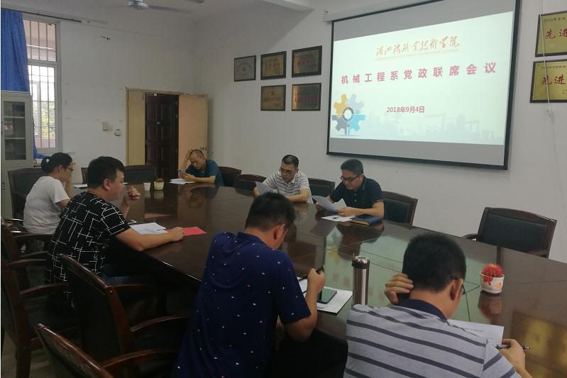当前位置: 系部首页>最新消息根据工作安排,机械工程系9月4日下午3点在系部会议室召开18-19上半度期初工作会议。会议由陆宇立同志主持。