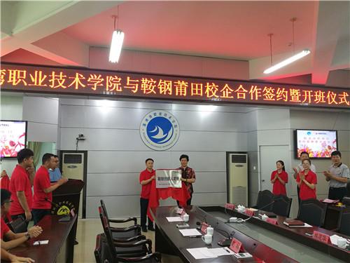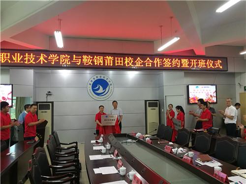 当前位置: 系部首页>最新消息2018年9月14日上午,在湄洲湾职业技术学院图书馆二楼会议室隆重举行湄职院与鞍钢(莆田)校企合作签约暨“鞍钢创新人才班”开班仪式。公司董事长赵林、总政委王绍华、林建华书记、许冬红院长、学院相关职能单位及系部领导参会。