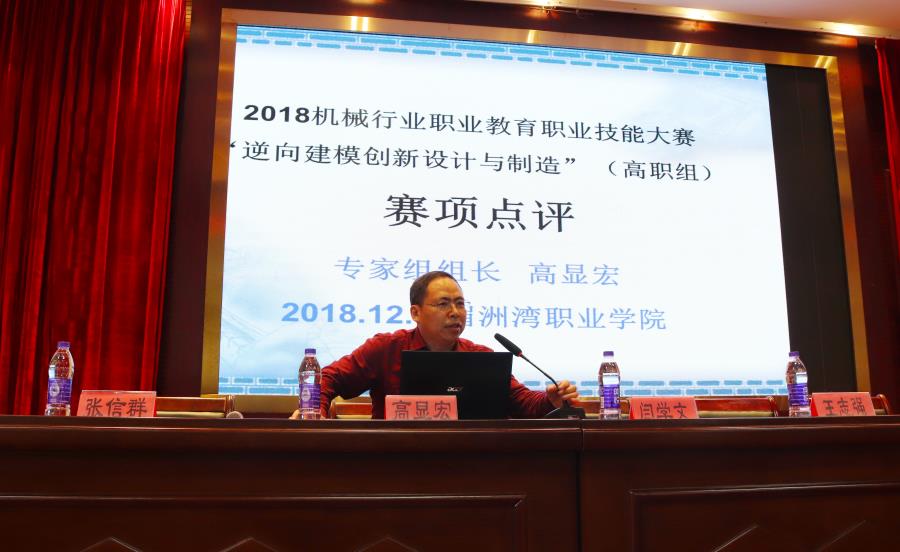 高显宏教授对大赛进行点评。他表示,行赛水平逐年提高,并且参赛热度空前,但仍需继续努力,尤其是仿真、加工工件过程检测。他指出,本次大赛有一大特色,那就是师生共同参与赛事,目的是通过老师亲身参与,引领教学、丰富教学内容,展示教学成果,找到教育教学的着力点。他希望选手能够找准定位,自找差距,寻求提升办法,把制造质量和精度提升到新的高度。
