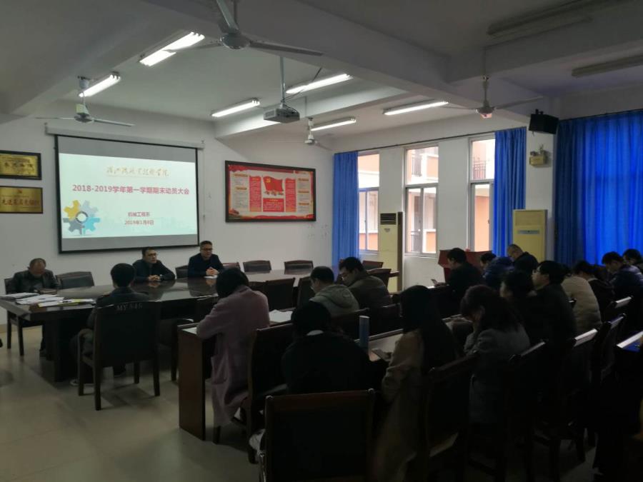 1月8日下午,机械工程系于系部会议室召开2018-2019年度期末工作会议,会议由陆宇立主任主持,系部全体教职工参会。