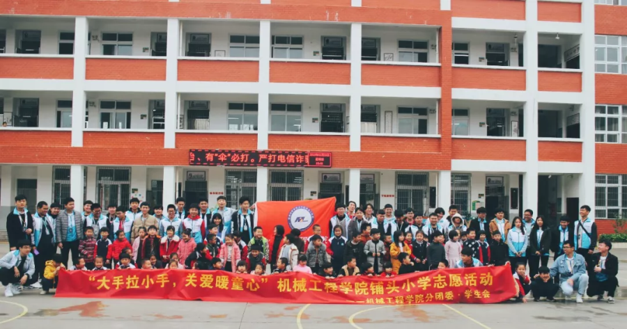 2月28日下午, 机械工程学院学生会组织了四十余名志愿者来到枫亭镇铺头小学,与一年级的小朋友们开展“大手拉小手,关爱暖童心”志愿服务活动,虽然午后下着雨,但志愿者们的热情不减,他们在班级里向小朋友们介绍雷锋生平事迹,传播雷锋乐于助人的精神,还教小朋友们学唱歌曲《学习雷锋好榜样》。