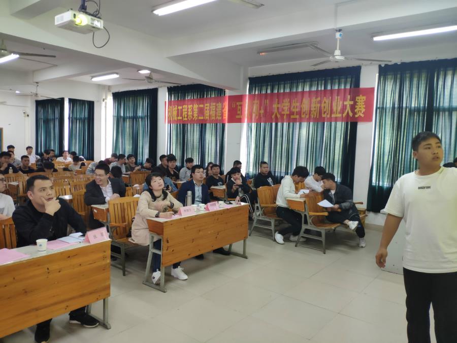 当前位置: 系部首页>最新消息为深入贯彻落实全国教育大会精神,加快培养创新创业人才,持续激发机械工程系学生创新创业热情,展示我系创新创业教育成果,2019年5月7号机械工程系在33号楼303多媒体教室举行了第二届“互联网+”创新创业大赛。教工党支部书记张星、党总支委员林志荣、教务处老师林群强、任课老师林丽生、行政老师陈琳升和辅导员曾嘉靖担任比赛评委。辅导员邱淑娇维持现场秩序。